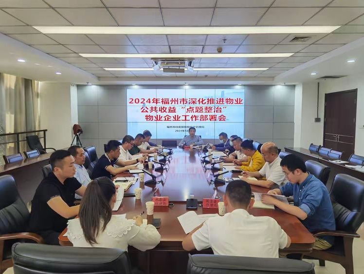 2024年5月16日下午,福州市房管局党组成员、副局长杜卫军主持召开2024年全市深化推进物业服务企业侵占业主公共收益“点题整治”物业服务企业工作部署会,各县(市)区房管(住建)局分管领导及科室负责人、四星级以上45家物业服务企业负责人、海都报、新闻网记者和市房管局物业管理处以及市物业管理协会相关人员参加会议。